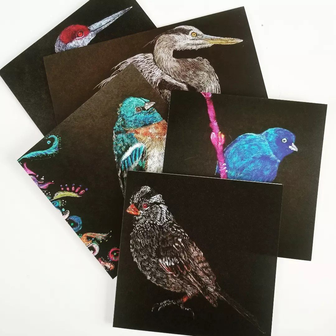 All of my cards are beautiful! Printed on heavyweight, recycled paper by a small, independent printer (Thanks Smartpress!). They are blank inside, while on the back they are labeled with both the common and Latin names, as well as a little fun fact about the bird. Each card comes with a matching envelope.